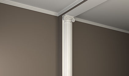 Полуколонна в сочетании с карнизами, плинтусами, молдингами позволит создать изысканный и законченный вид интерьера.