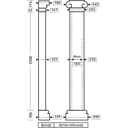 Дополнительно к капители необходимо подобрать ствол: 1.16.010, 1.16.011, базу: 1.17.100, 1.17.200, кольцо: 1.15.300.