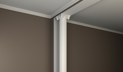 Колонна в сочетании с карнизами, плинтусами, молдингами позволит создать изысканный и законченный вид интерьера.