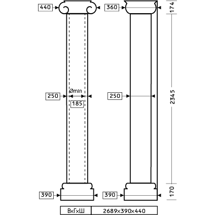 Дополнительно к стволу колонны необходимо подобрать капитель: 1.11.004, базу: 1.13.200.
