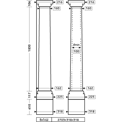 Дополнительно к стволу колонны необходимо подобрать капитель: 1.11.008, базу: 1.13.700, пьедестал: 1.14.001.