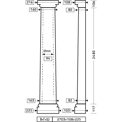 Дополнительно к стволу полуколонны необходимо подобрать капитель: 1.15.008, базу: 1.17.700.