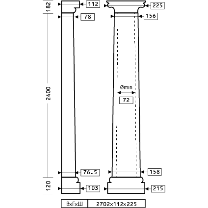 Дополнительно к стволу полуколонны необходимо подобрать капитель: 1.15.010, базу: 1.17.900.
