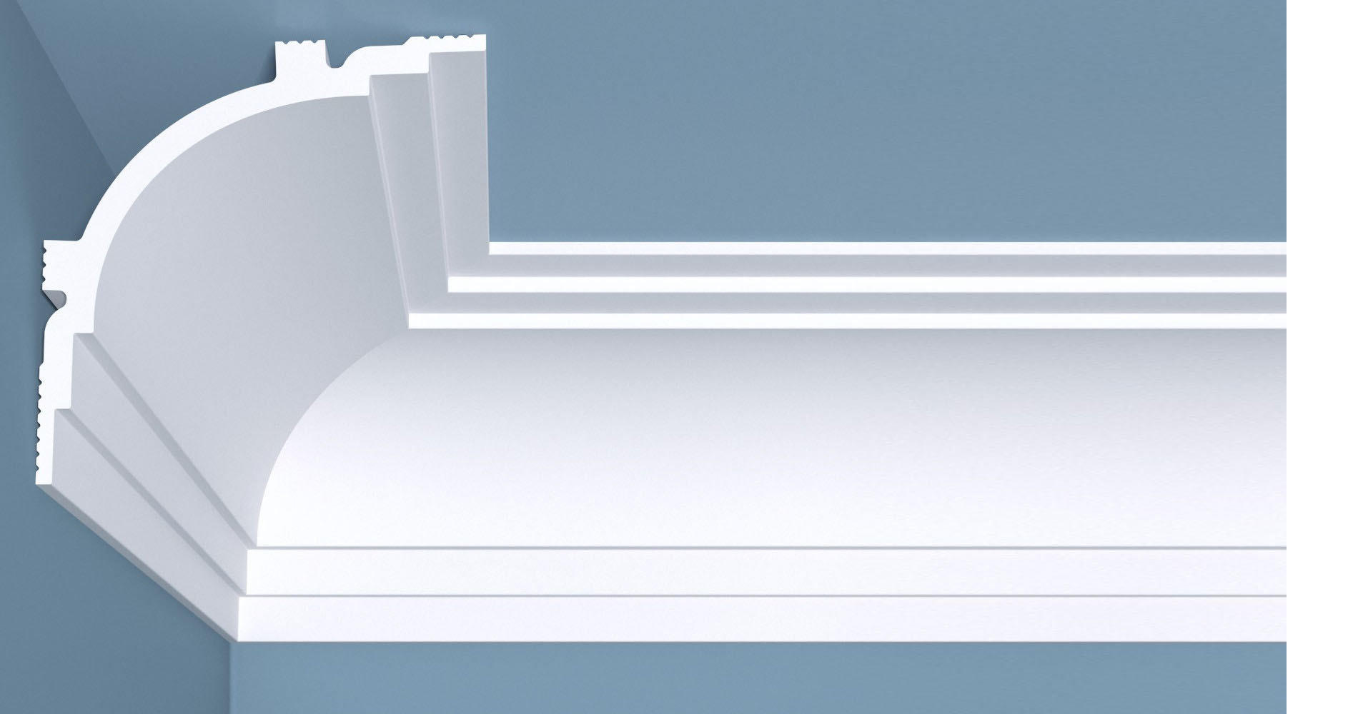 Потолочный плинтус произведен из полистирола высокой плотности (XPS), предназначен для внутренней отделки жилых и коммерческих помещений. Профили загрунтованы полиуретановой грунтовкой на водной основе и готовы к окрашиванию. Для покраски карнизов в различные цвета, краску можно выбрать здесь!
