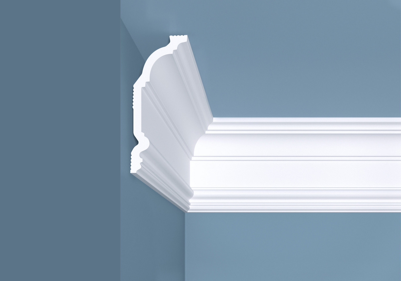 Потолочный плинтус произведен из полистирола высокой плотности (XPS), предназначен для внутренней отделки жилых и коммерческих помещений. Профили загрунтованы полиуретановой грунтовкой на водной основе и готовы к окрашиванию. Для покраски карнизов в различные цвета, краску можно выбрать здесь!