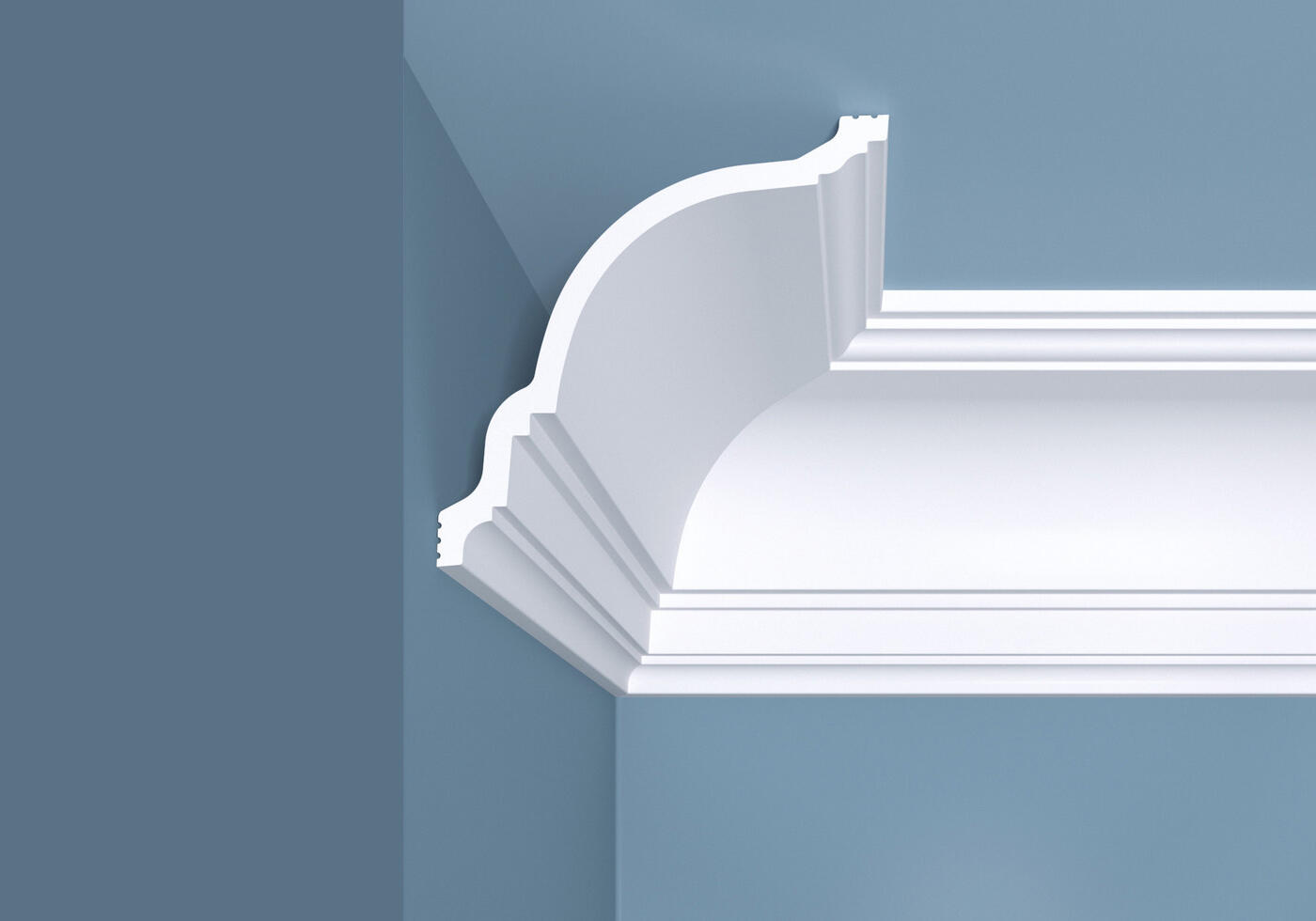 Потолочный плинтус произведен из полистирола высокой плотности (XPS), предназначен для внутренней отделки жилых и коммерческих помещений. Профили загрунтованы полиуретановой грунтовкой на водной основе и готовы к окрашиванию. Для покраски карнизов в различные цвета, краску можно выбрать здесь!