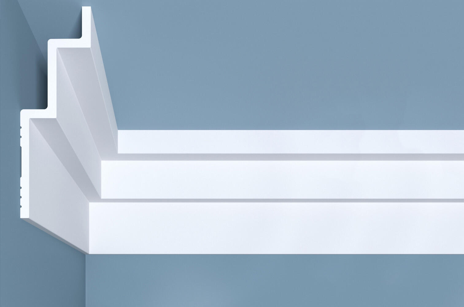 Потолочный плинтус произведен из полистирола высокой плотности (XPS), предназначен для внутренней отделки жилых и коммерческих помещений. Профили загрунтованы полиуретановой грунтовкой на водной основе и готовы к окрашиванию. Для покраски карнизов в различные цвета, краску можно выбрать здесь!