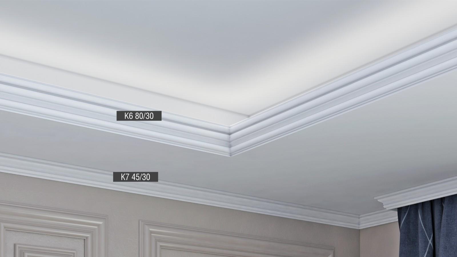 Потолочный плинтус произведен из полистирола высокой плотности (XPS), предназначен для внутренней отделки жилых и коммерческих помещений. Профили загрунтованы полиуретановой грунтовкой на водной основе и готовы к окрашиванию. Для покраски карнизов в различные цвета, краску можно выбрать здесь!