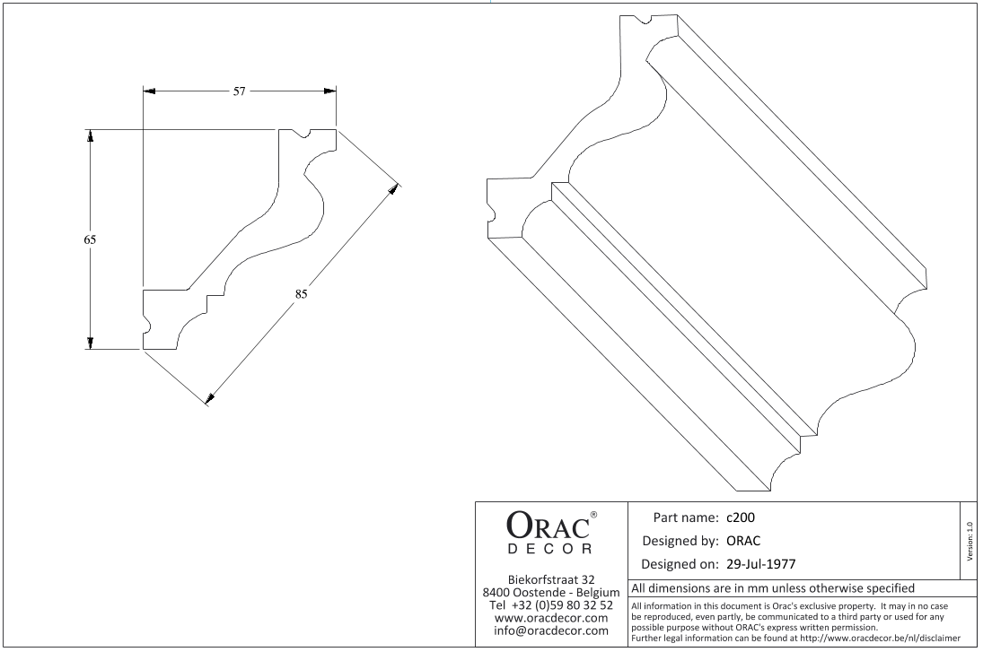 C200 карниз из полиуретана от бельгийского производителя лепного декора ORAC DECOR (Oрак Декор).