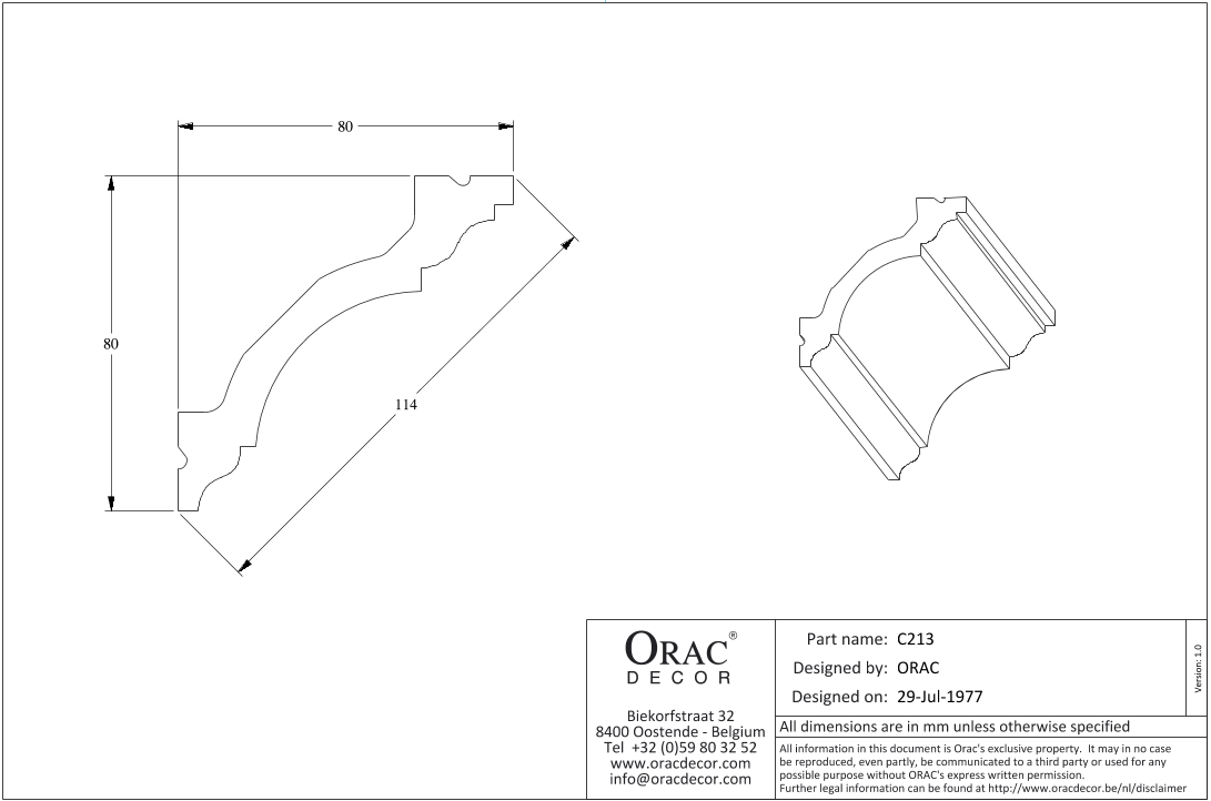 C213 карниз из полиуретана от бельгийского производителя лепного декора ORAC DECOR (Oрак Декор).