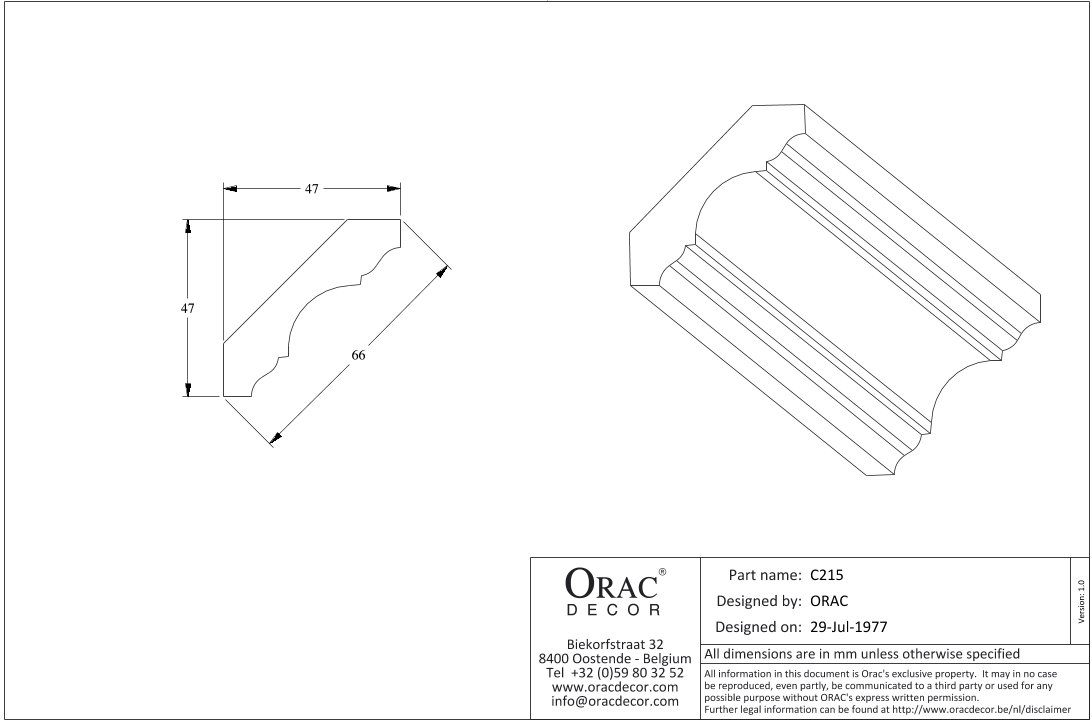 C215 карниз из полиуретана от бельгийского производителя лепного декора ORAC DECOR (Oрак Декор).