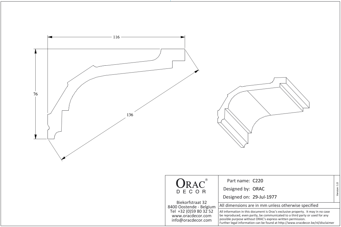 C220 карниз из полиуретана от бельгийского производителя лепного декора ORAC DECOR (Oрак Декор).