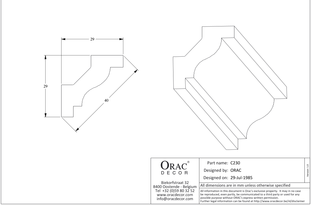 C230 карниз из полиуретана от бельгийского производителя лепного декора ORAC DECOR (Oрак Декор).