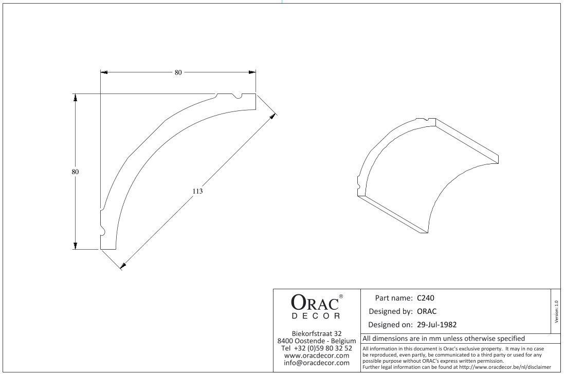 C240 карниз из полиуретана от бельгийского производителя лепного декора ORAC DECOR (Oрак Декор).