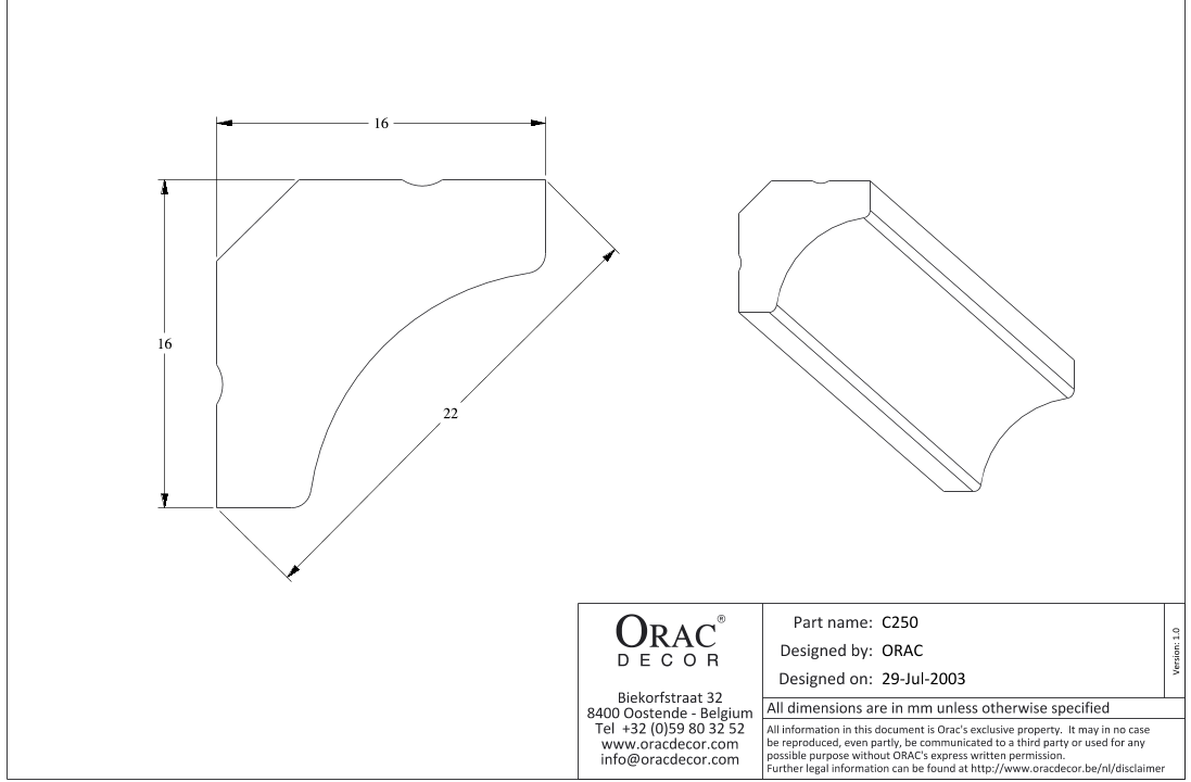 C250 карниз из полиуретана от бельгийского производителя лепного декора ORAC DECOR (Oрак Декор).