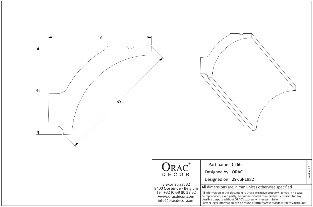 C260 карниз из полиуретана от бельгийского производителя лепного декора ORAC DECOR (Oрак Декор).