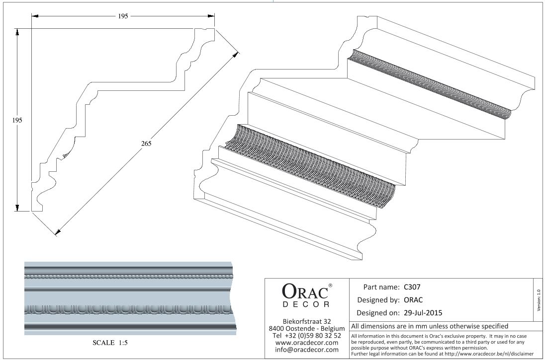 C307 карниз из полиуретана от бельгийского производителя лепного декора ORAC DÉCOR (Oрак Декор).