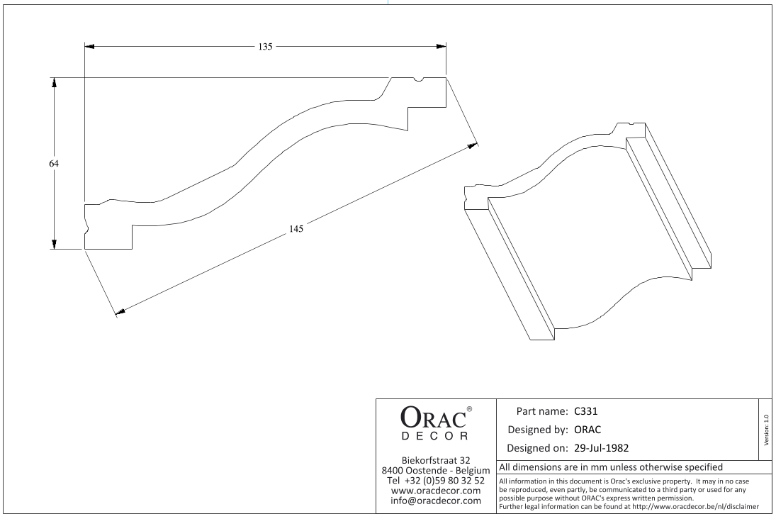 C331 карниз из полиуретана от бельгийского производителя лепного декора ORAC DECOR (Oрак Декор).
