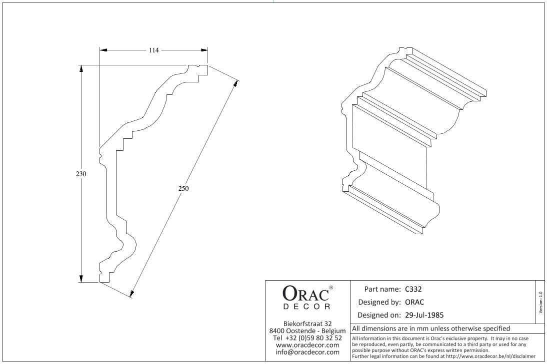 C332 карниз из полиуретана от бельгийского производителя лепного декора ORAC DÉCOR (Oрак Декор).