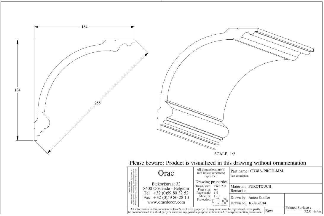 C338 потолочный карниз из полиуретана от бельгийского производителя лепного декора ORAC DÉCOR (Oрак Декор).