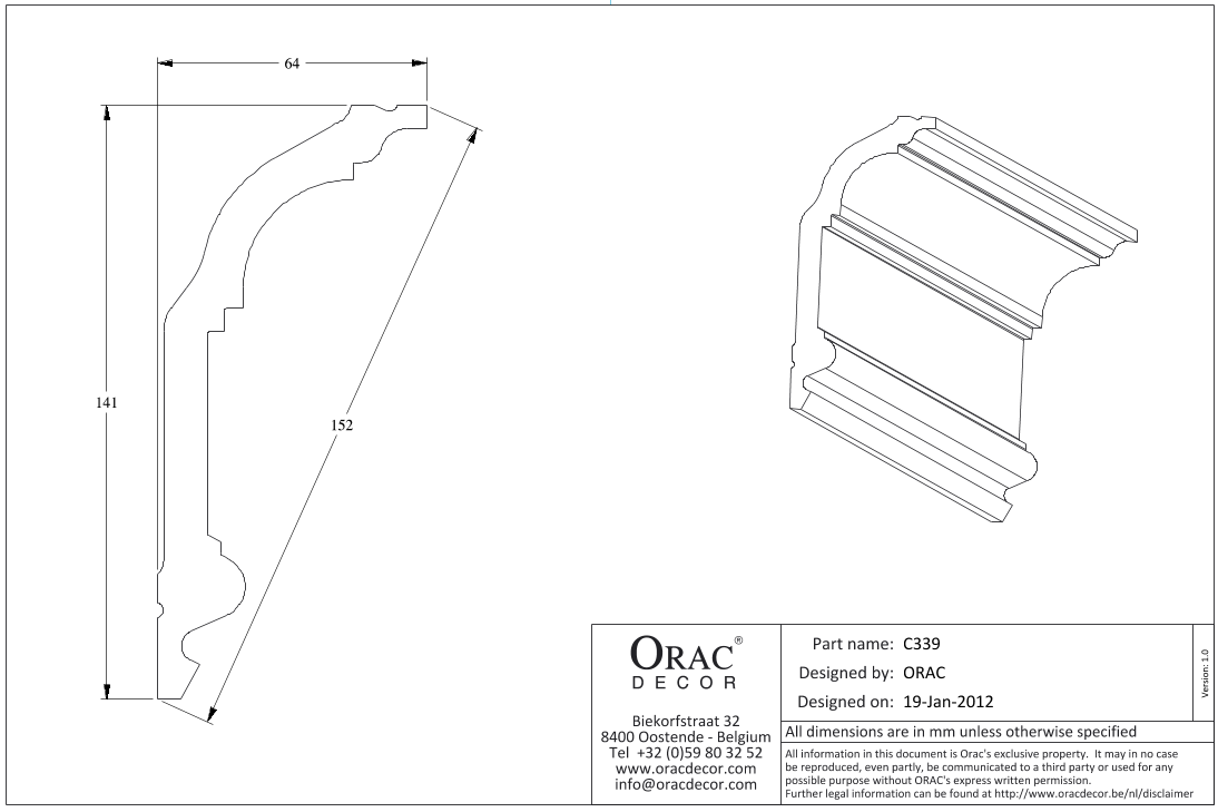 C339 карниз из полиуретана от бельгийского производителя лепного декора ORAC DECOR (Oрак Декор).