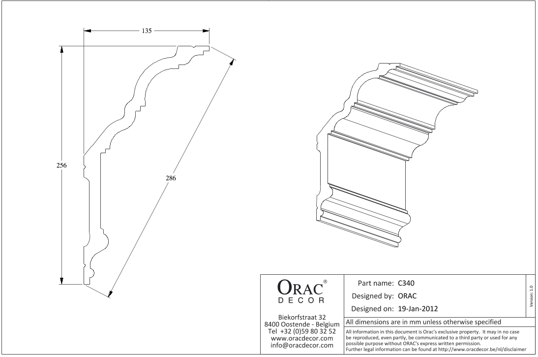 C340 карниз из полиуретана от бельгийского производителя лепного декора ORAC DÉCOR (Oрак Декор).