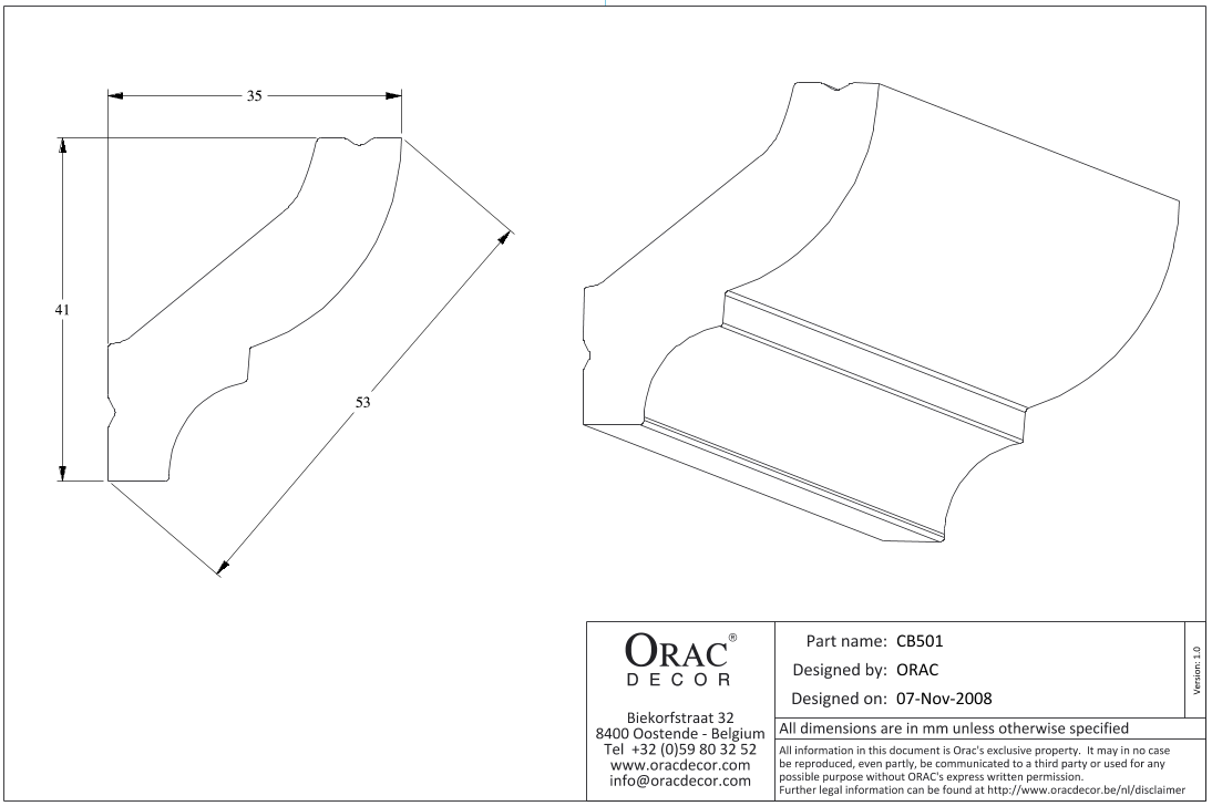 CB501N карниз от бельгийского производителя лепного декора ORAC DÉCOR (Oрак Декор).