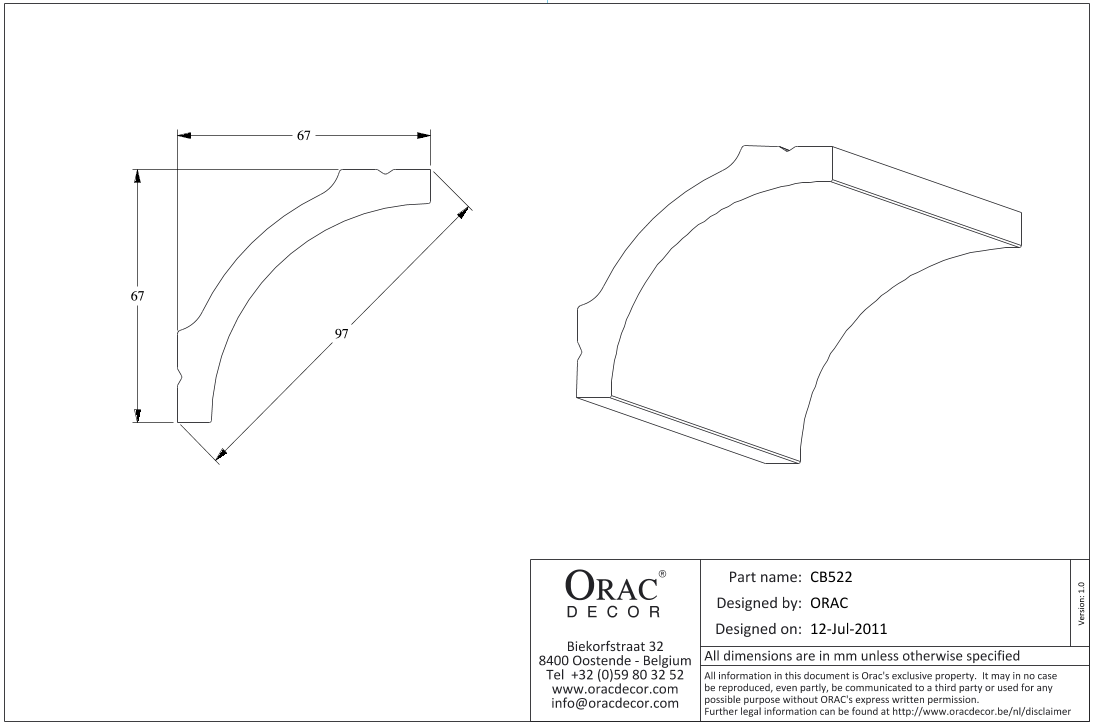 CB522N карниз от бельгийского производителя лепного декора ORAC DÉCOR (Oрак Декор).