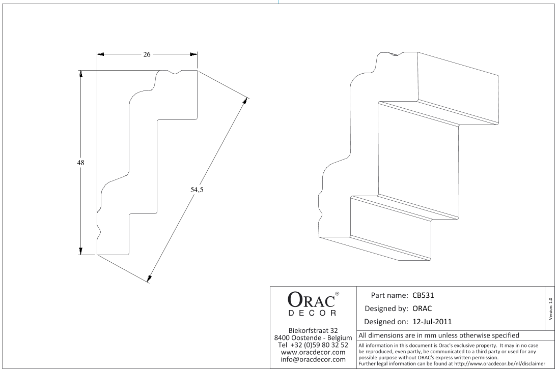 CB531N карниз от бельгийского производителя лепного декора ORAC DÉCOR (Oрак Декор).