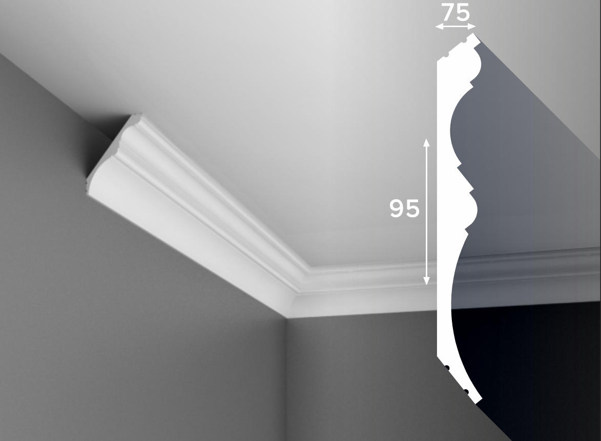 •Практическая. Изделия из экополимера легко скрывают изъяны, дефекты геометрии помещения и стыков потолка и стен. При этом благодаря особенностям материала экополимерный карниз не дает усадку и не теряет форму со временем.