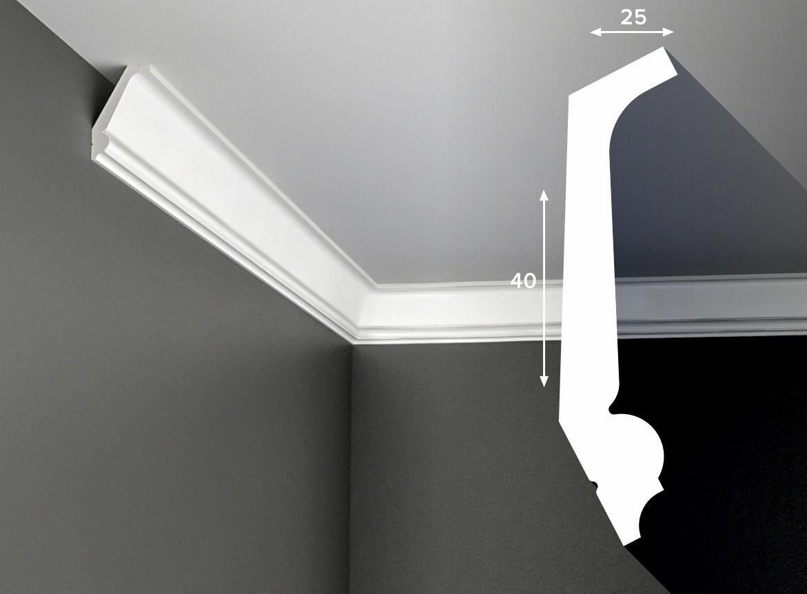 •Практическая. Изделия из экополимера легко скрывают изъяны, дефекты геометрии помещения и стыков потолка и стен. При этом благодаря особенностям материала экополимерный карниз не дает усадку и не теряет форму со временем.