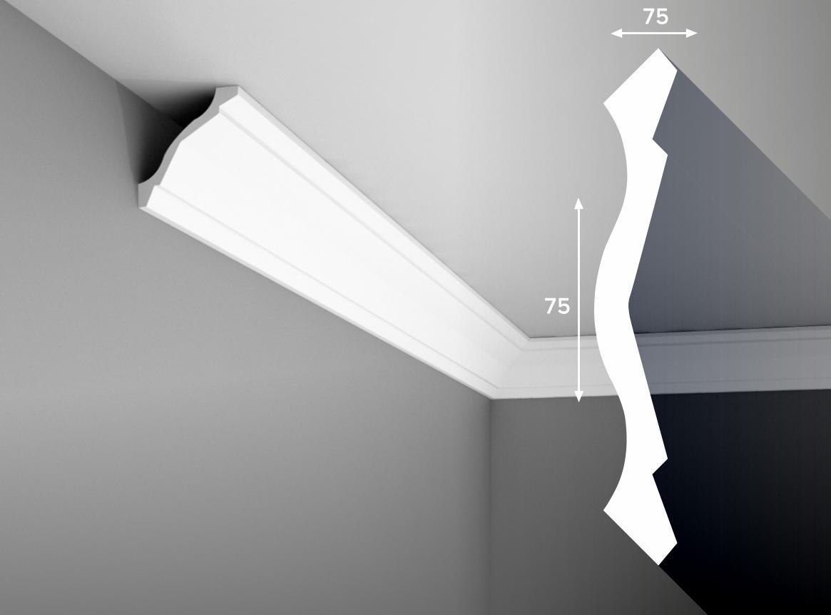 •Практическая. Изделия из экополимера легко скрывают изъяны, дефекты геометрии помещения и стыков потолка и стен. При этом благодаря особенностям материала экополимерный карниз не дает усадку и не теряет форму со временем.