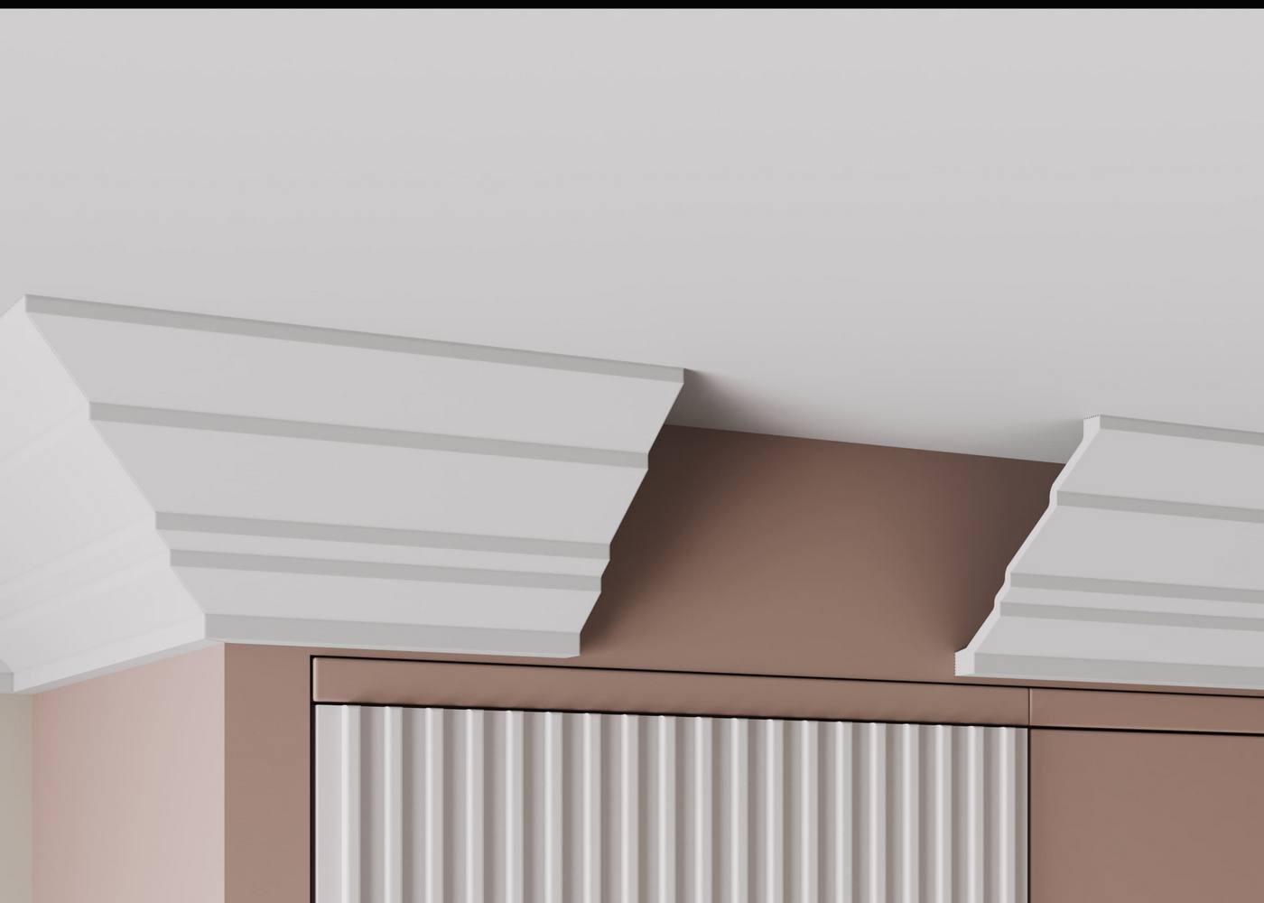 •Практическая. Изделия из экополимера легко скрывают изъяны, дефекты геометрии помещения и стыков потолка и стен. При этом благодаря особенностям материала экополимерный карниз не дает усадку и не теряет форму со временем.