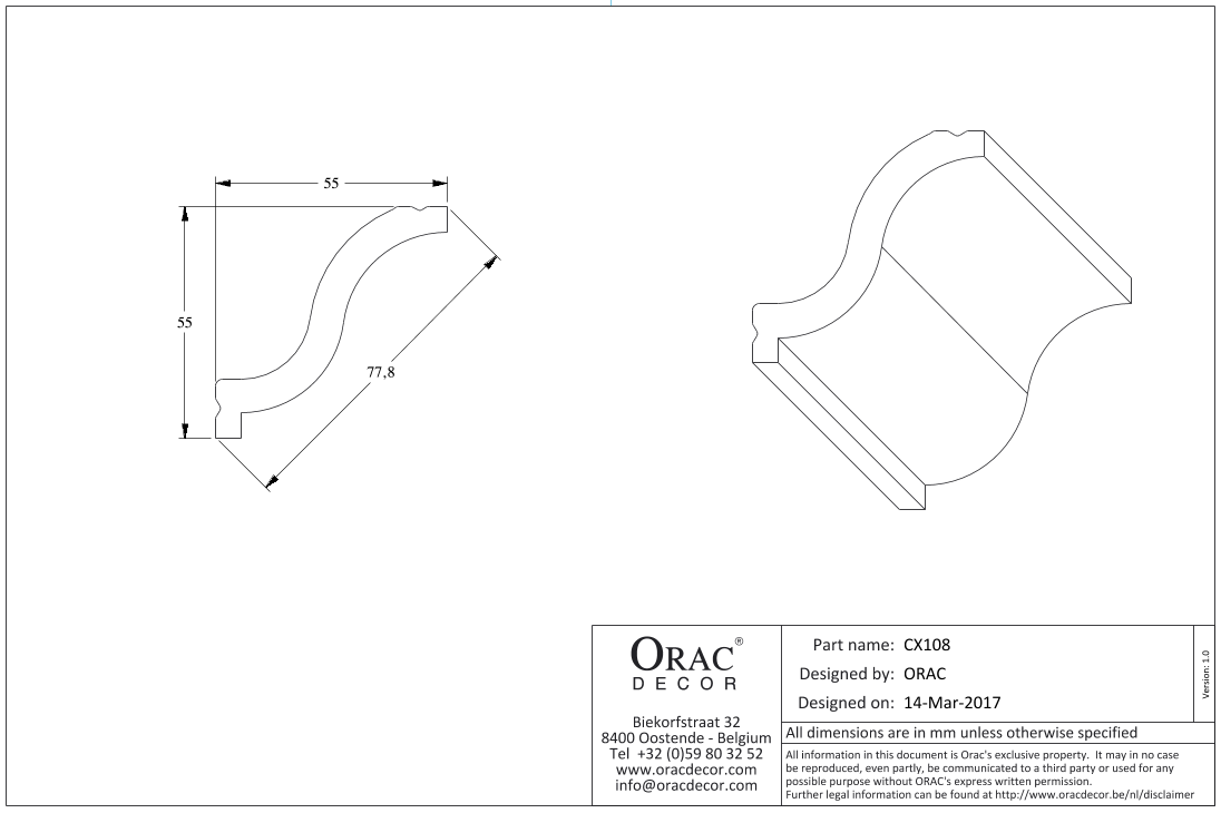 CX108 потолочный карниз из дюрополимера от бельгийского производителя лепного декора ORAC DÉCOR (Oрак Декор).