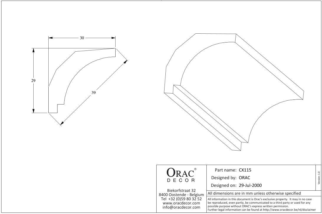 CX115 потолочный карниз из дюрополимера от бельгийского производителя лепного декора ORAC DÉCOR (Oрак Декор).