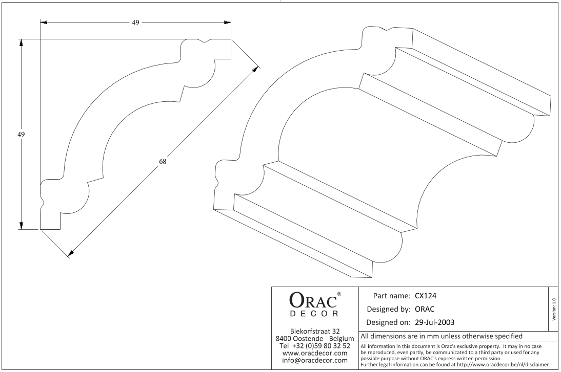 СX124 потолочный карниз из дюрополимера от бельгийского производителя лепного декора ORAC DECOR (Oрак Декор).