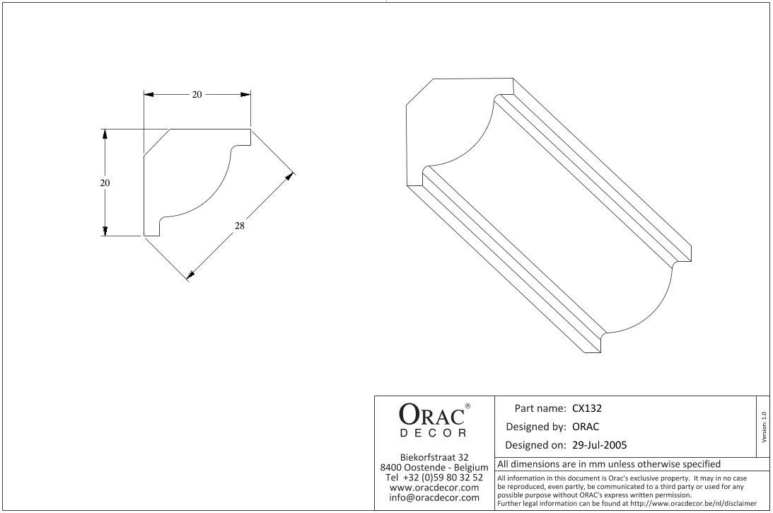CX132 потолочный карниз из дюрополимера от бельгийского производителя лепного декора ORAC DECOR (Oрак Декор).