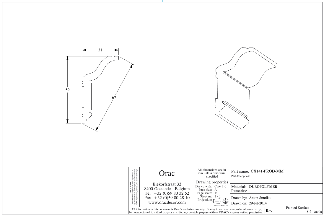 CX141 потолочный карниз из дюрополимера от бельгийского производителя лепного декора ORAC DÉCOR (Oрак Декор).