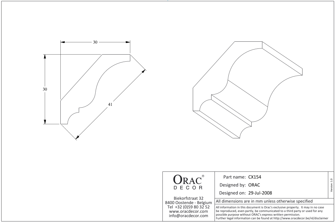 CX154 потолочный карниз из дюрополимера от бельгийского производителя лепного декора ORAC DÉCOR (Oрак Декор).