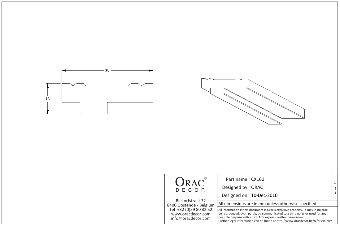 CX160 потолочный карниз из дюрополимера от бельгийского производителя лепного декора ORAC DÉCOR (Oрак Декор).