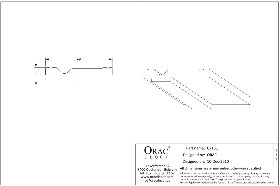 CX161 потолочный карниз из дюрополимера от бельгийского производителя лепного декора ORAC DÉCOR (Oрак Декор).