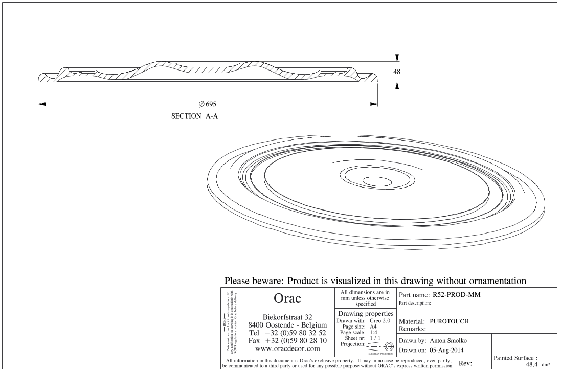 Розетка на потолок под люстру R52 от бельгийского производителя лепного декора ORAC DÉCOR (Oрак Декор).