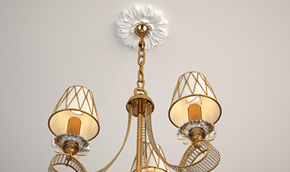 Потолочная розетка в сочетании с карнизами, плинтусами, молдингами позволит создать изысканный и законченный вид интерьера.