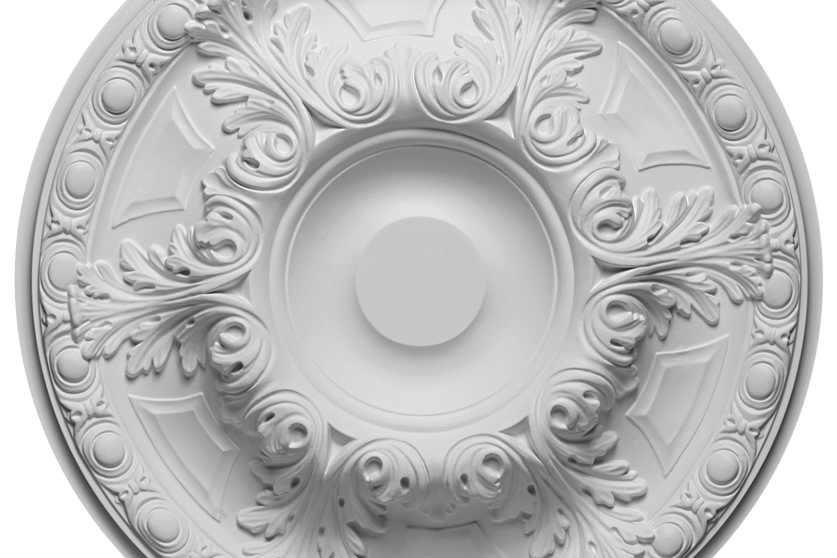 Потолочная розетка в сочетании с карнизами, плинтусами, молдингами позволит создать изысканный и законченный вид интерьера.