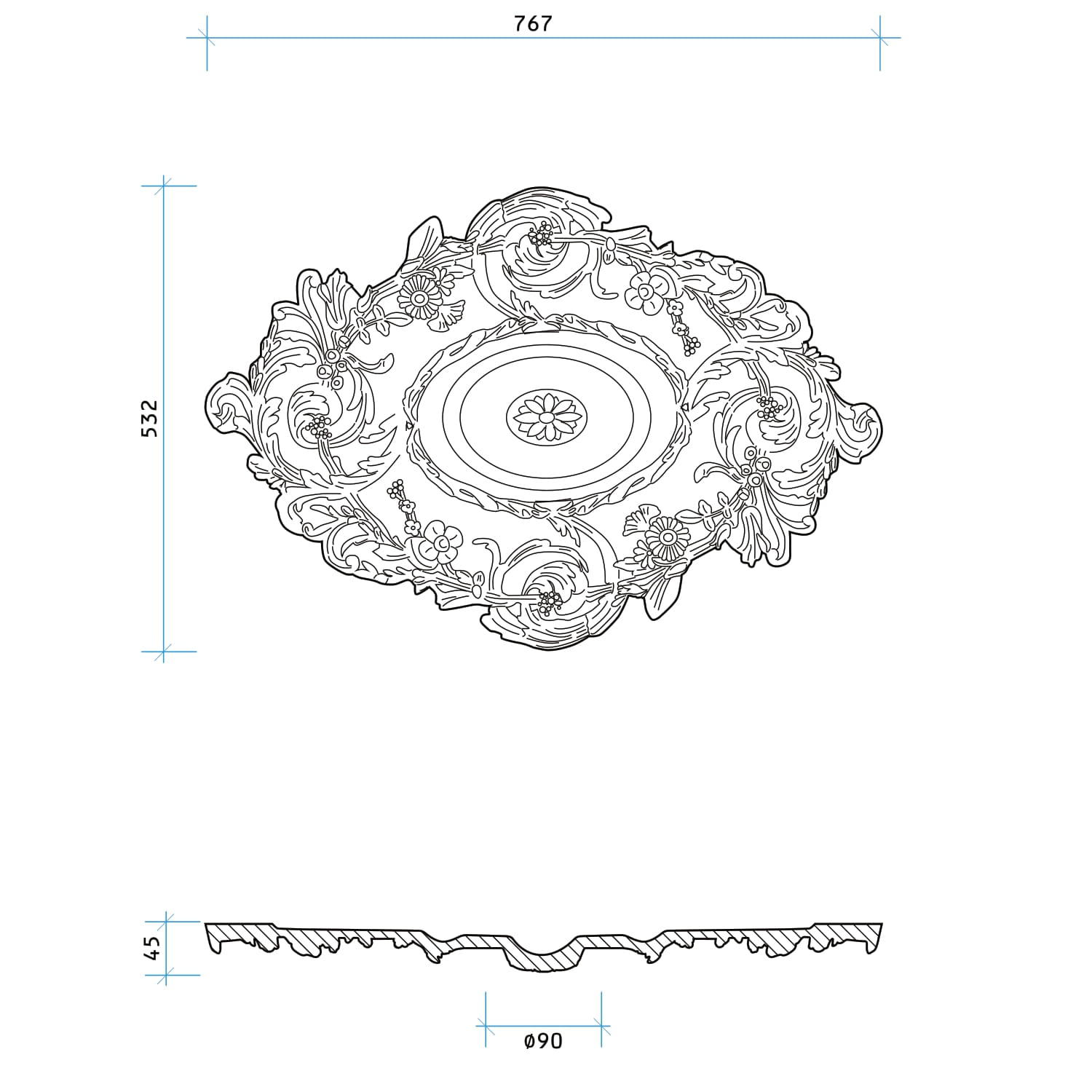 Потолочная розетка в сочетании с карнизами, плинтусами, молдингами позволит создать изысканный и законченный вид интерьера.