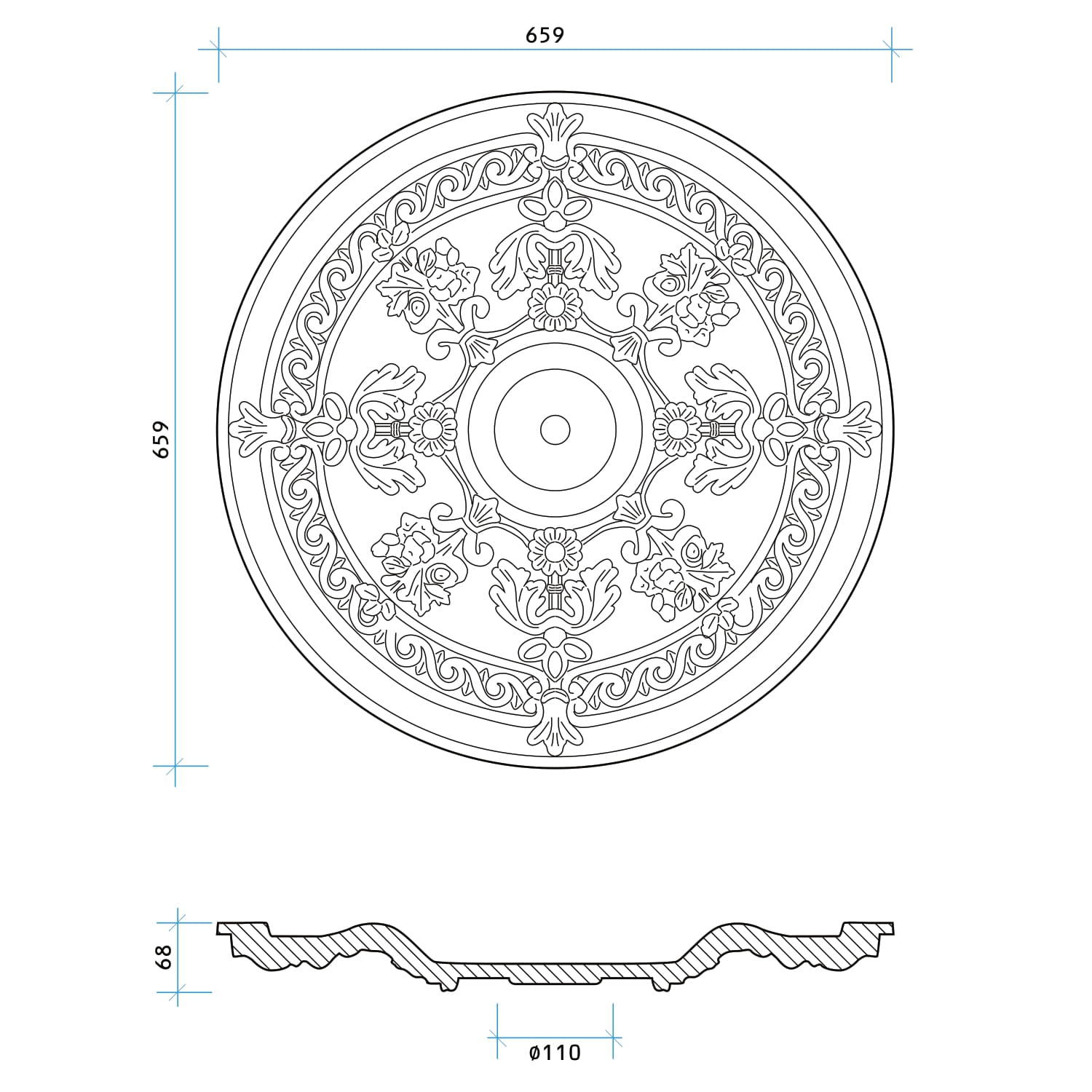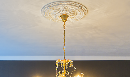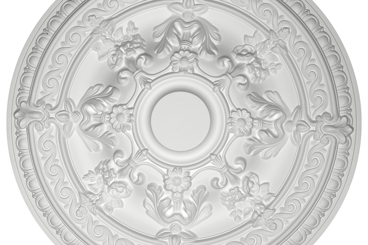 Потолочная розетка в сочетании с карнизами, плинтусами, молдингами позволит создать изысканный и законченный вид интерьера.