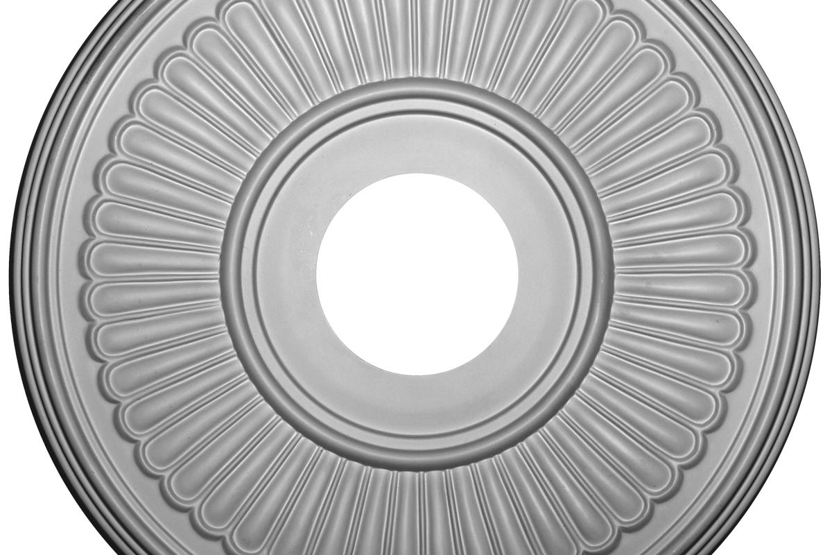 Потолочная розетка в сочетании с карнизами, плинтусами, молдингами позволит создать изысканный и законченный вид интерьера.