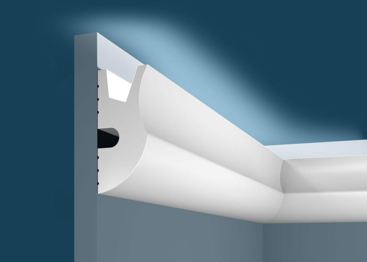 Карнизы для подстветки потолка Orac Decor, Европласт NMC, Cosca подчеркнут интерьер дома. Плинтус с подсветкой напольный. Плинтус для подсветки потолка.