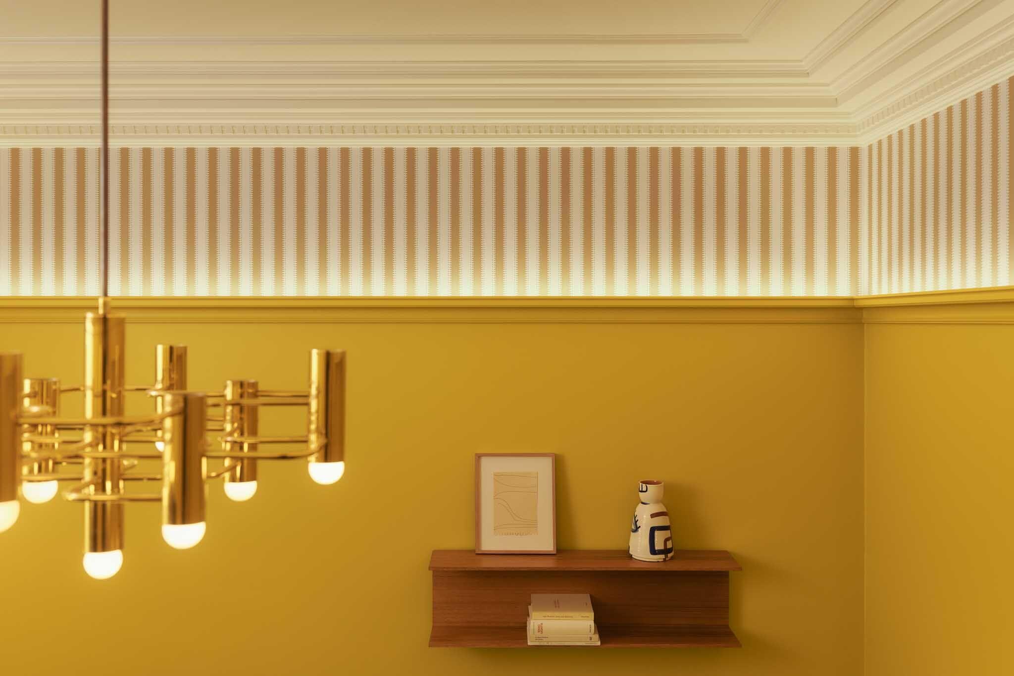 - Безусадочная шпаклевка для стыков, торцов и примыканий ORAC DECOFILLER FL300 — хорошая адгезия с карнизом, быстро высыхает и не усаживается, отлично шлифуется и окрашивается.