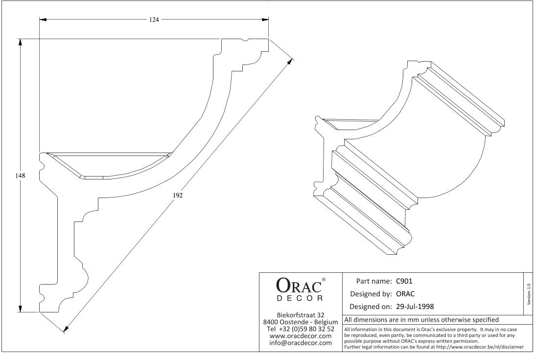 C901 карниз из полиуретана от бельгийского производителя лепного декора ORAC DECOR (Oрак Декор).
